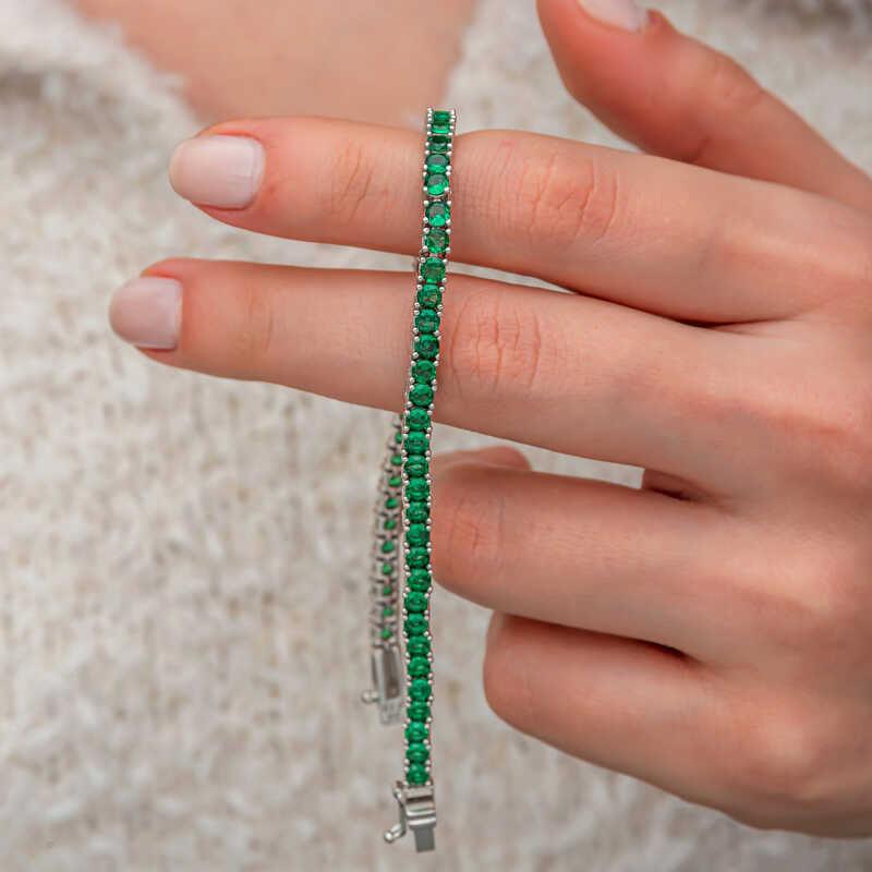 Gümüş Yeşil Zirkon Taşlı Su Yolu Kadın Bileklik