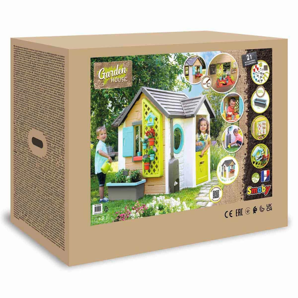 Bu şirin bahçe evi, çocukların güvenle oynayabileceği dayanıklı ve kaliteli malzemelerden üretilmiştir.