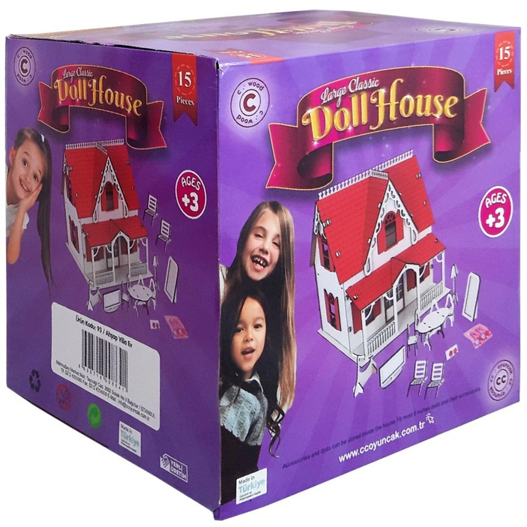 Oyuncak Ahşap Kırmızı Villa Ev 15 Parça