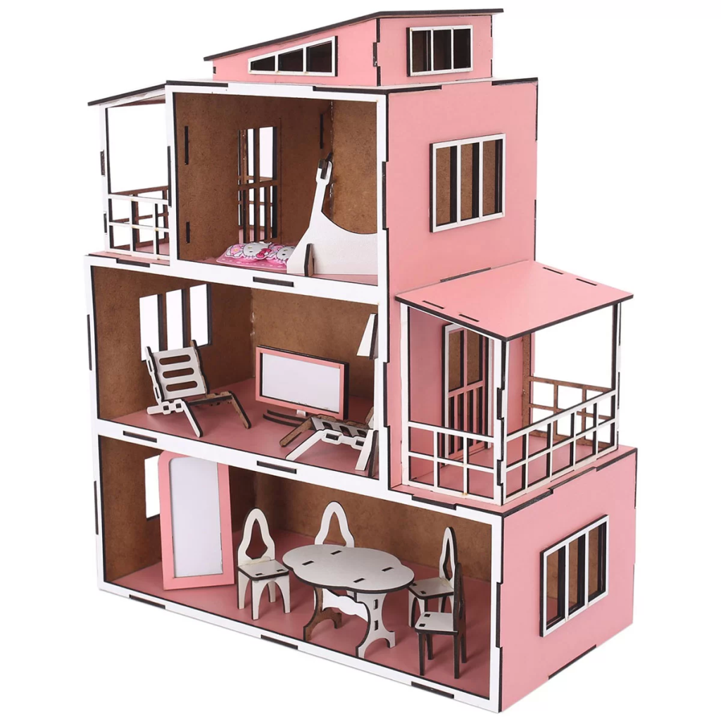Nessiworld Oyuncak Ahşap Klasik 3 Katlı Bebek Evi