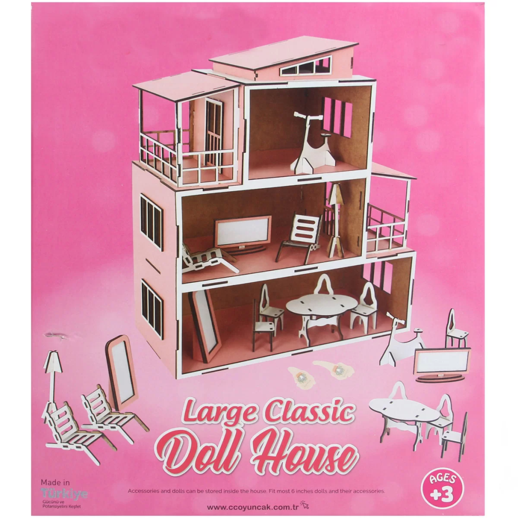 Oyuncak Ahşap Klasik 3 Katlı Bebek Evi