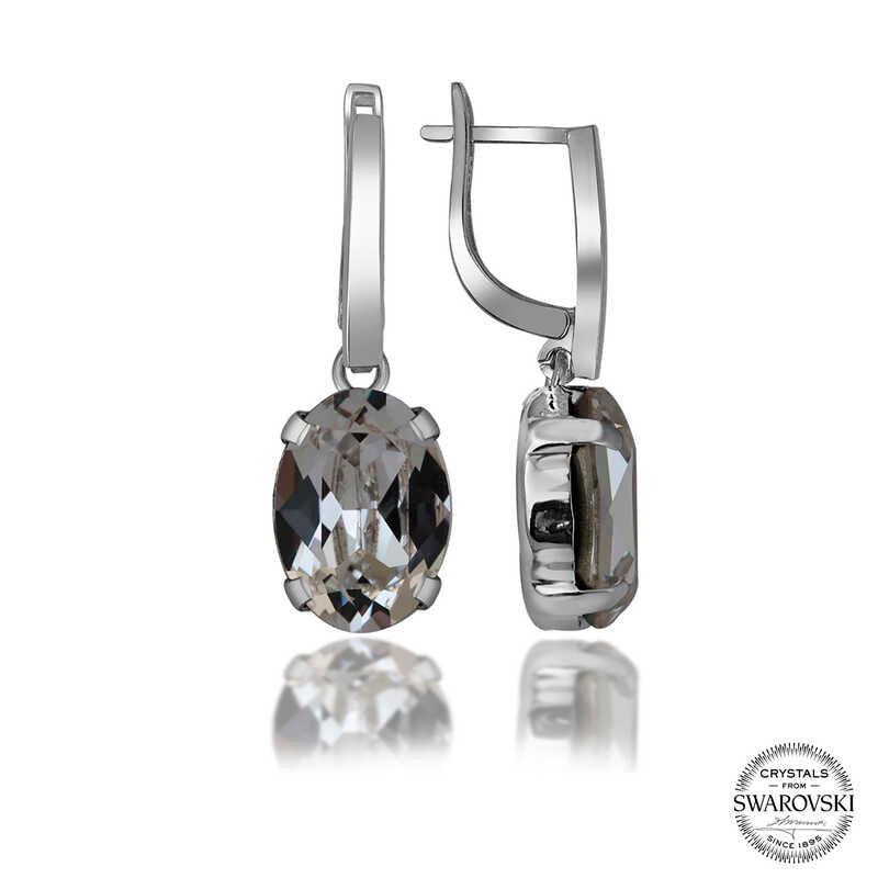 Swarovski Crystal Taşlı Gümüş Beyaz Oval Sallantılı Kadın Küpe