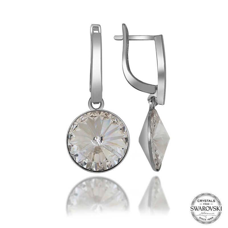 Swarovski Crystal Taşlı Gümüş Beyaz Sallantılı Kadın Küpe