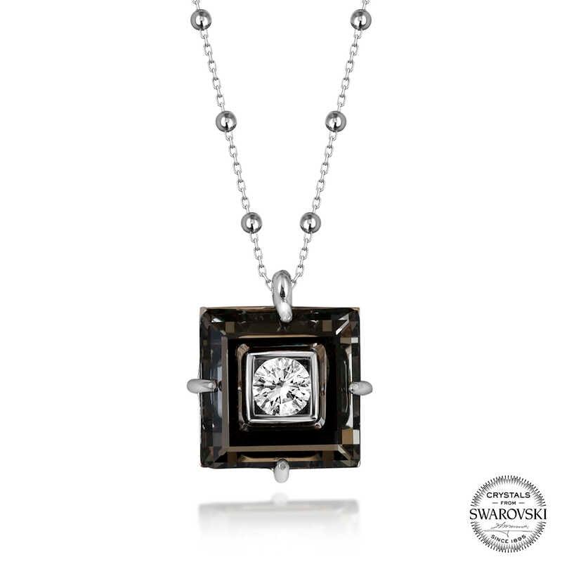 Swarovski Crystal Taşlı Top Zincir Siyah Elmas Gümüş Kadın Kolye