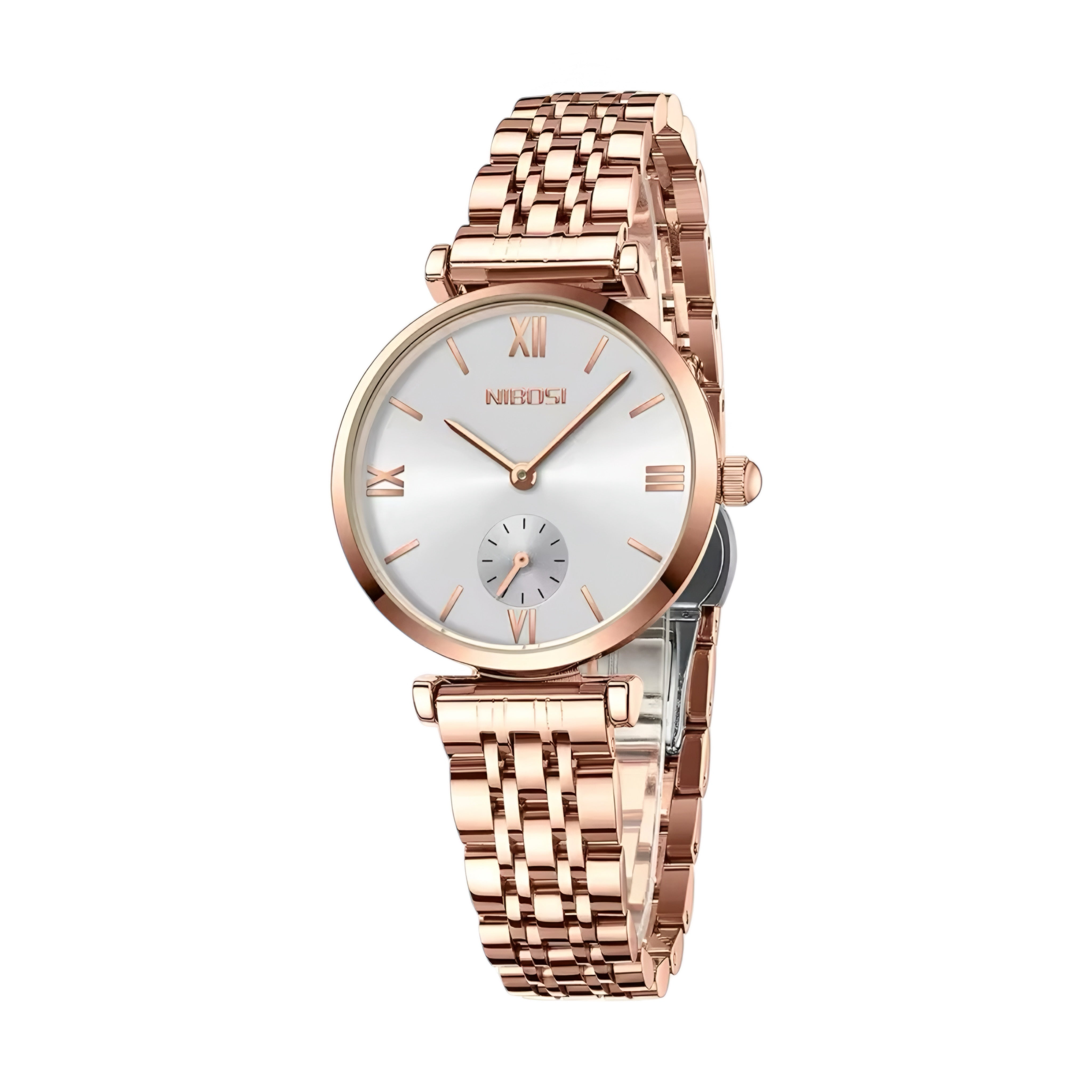 Meanyou Emerald Bronze Kadın Kol Saati, bronz tonlu metal kasası ve zümrüt yeşili kadranıyla zarif bir görünüm sunar. Günlük kombinlerden özel davetlere kadar her stile uyum sağlayan bu kadın kol saati, hafif yapısı sayesinde bilekte rahat bir kullanım sağlar.