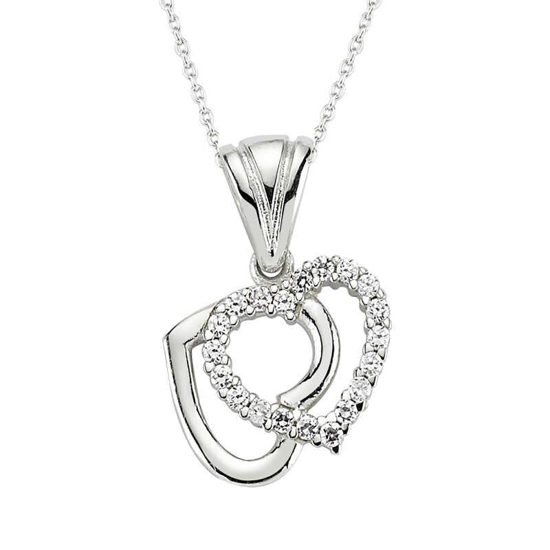 Gümüş Çift Kalpli Bayan Kolye Biri taşlı biri taşsız olan iki tane kalpten oluşan bu harika tasarım kalp kolye modeli...
